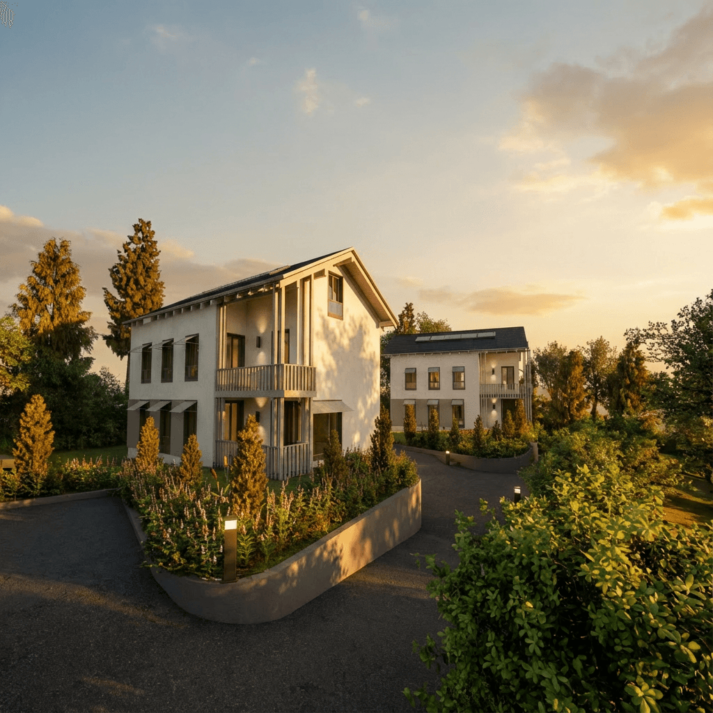 Oberhalb des Ammersees entstehen sechs moderne Häuser, die Ruhe, Architektur und Natur auf besondere Weise verbinden. Klare Linien, viel Glas und sonnige Südausrichtung schaffen lichtdurchflutete Räume mit direktem Zugang ins Grüne.